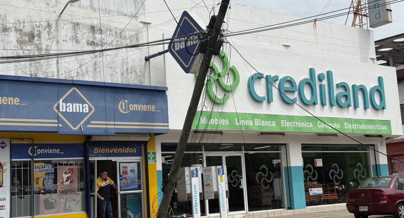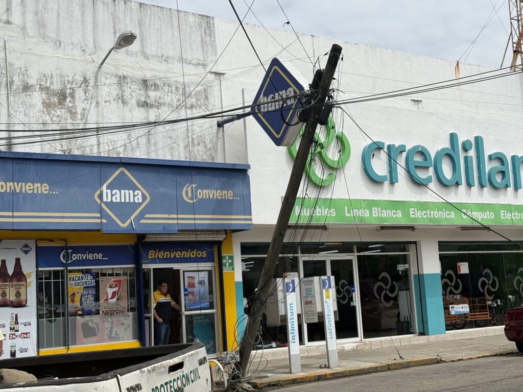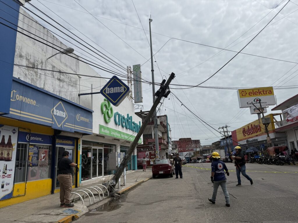 Minatitlán, Ver.- Un incidente ocurrido en la avenida Miguel Hidalgo, a la altura de las calles Manuel Rodríguez Olán y Emilio Carranza, puso en alerta a las autoridades y habitantes de la colonia Centro de Minatitlán, cuando un poste de madera perteneciente a Telmex estuvo a punto de colapsar sobre la vía pública.